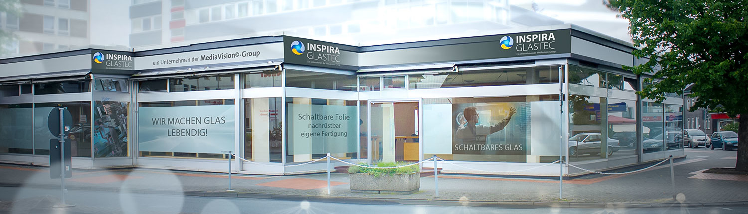 In unserem ‚InspiraGlastec‘-Concept Store finden Sie auf 460 qm alles rund um schaltbares Glas und schaltbare Folien unter einem Dach: den Media Vision®-Showroom und unsere Produktionsstätte für schaltbare Folie.